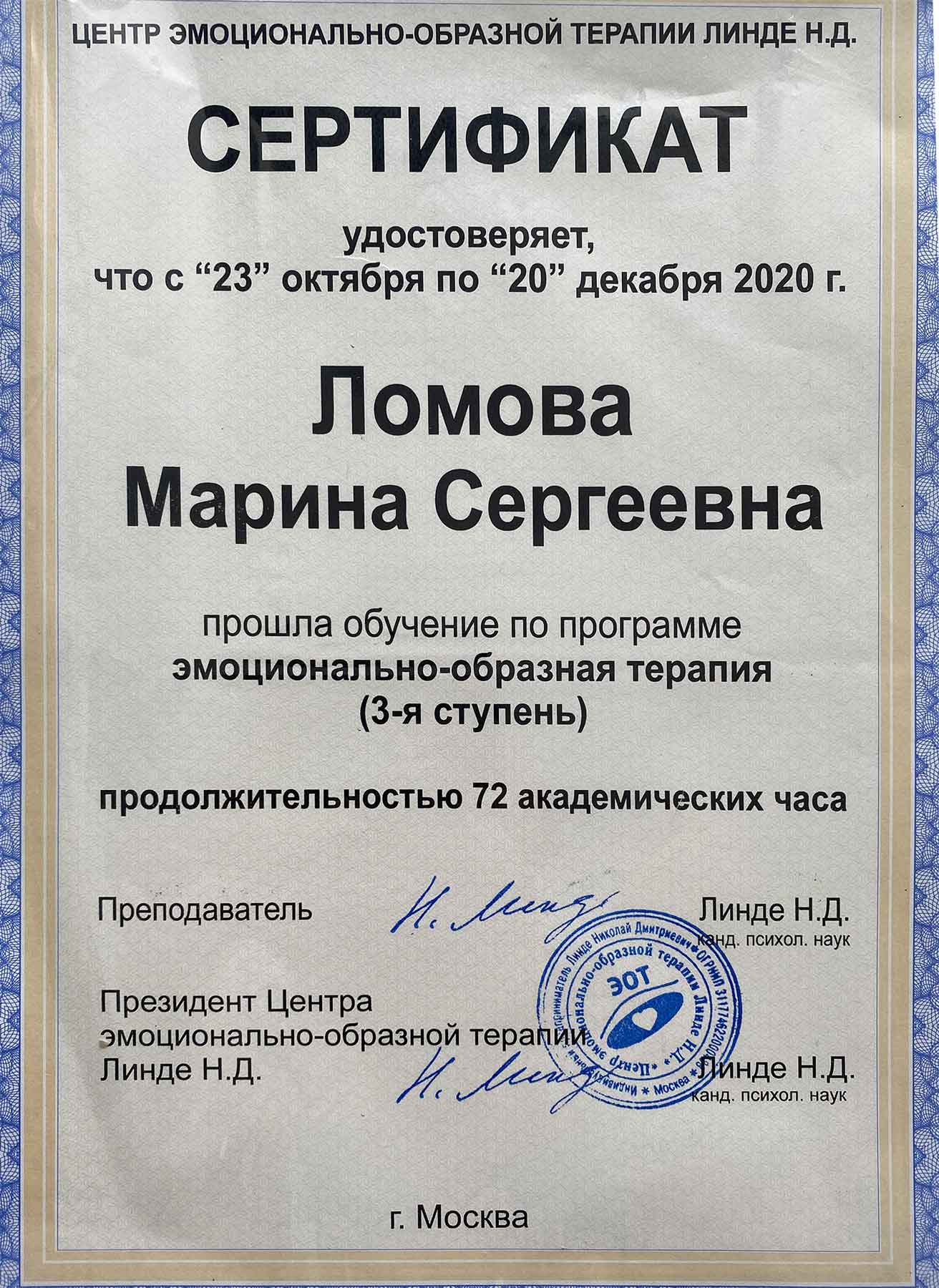 Марина Ломова — психолог, психотерапевт. Более 5 лет я работаю по методу эмоционально-образной терапии.